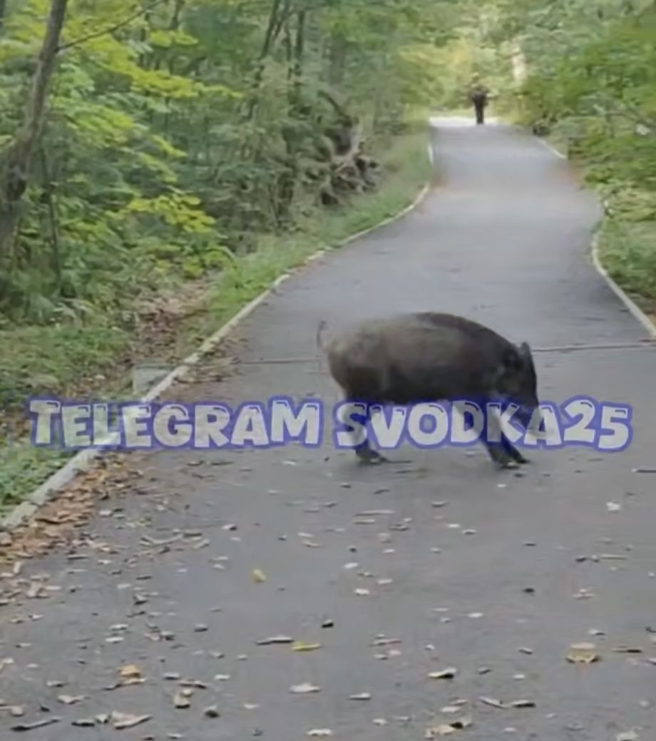 Необычное происшествие случилось сегодня в Ботаническом саду приморской столицы. Дикий кабан совершенно невозмутимо вышел на прогулочную тропу прямо перед отдыхающими, сообщает PRIMPRESS.