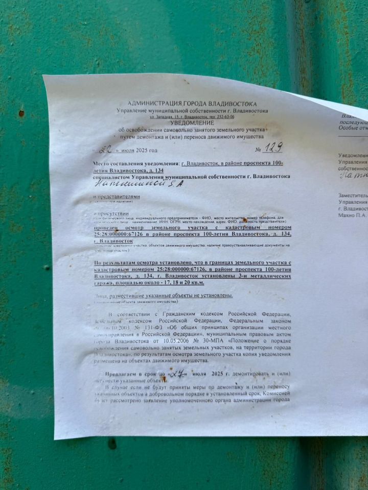 В июле 2025 года представители администрации Владивостока посетили аварийный участок и разместили уведомления для владельцев незаконных гаражей о необходимости их демонтажа или переноса.