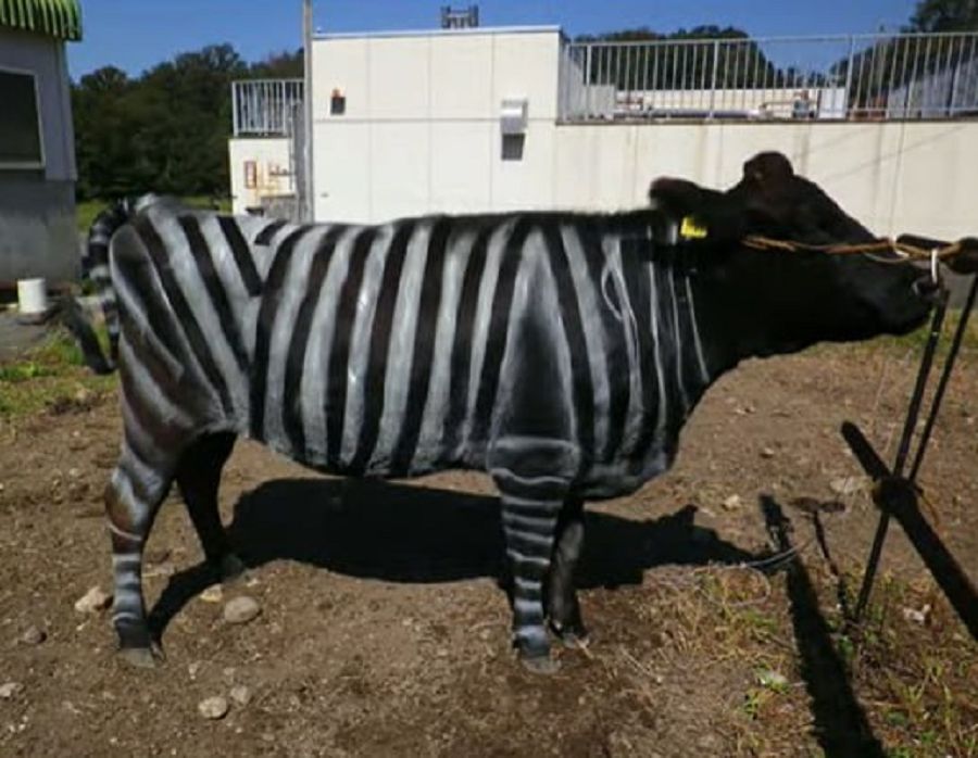 Исследование, которым руководил Татаки Кодзима, проводилось еще в 2019 году. Тогда к нему обратился фермер, попросивший совета о том, как бороться с мухами, а ученому случайно попалась передача про то, что полосатая раскраска помогает зебрам в борьбе с насекомыми. Эксперименты показали, что, если корову раскрасить черно-белыми полосками (зебровый узор), мухи, слепни и прочие кровососущие насекомые кусают ее на 50% реже, чем животное без окраски или с одними черными полосами. Для окрашивания коров ученые использовали водорастворимые лаки.