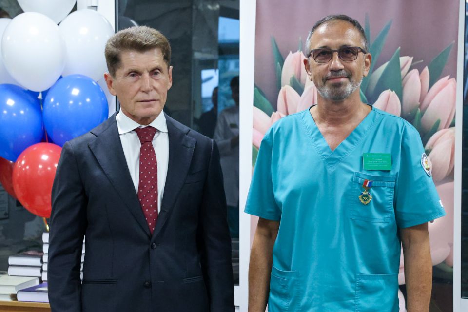 В качестве подарков сотрудникам Олег Кожемяко вручил почётные грамоты, благодарности и благодарственные письма. А завотделением анестезиологии и реанимации, врача-анестезиолога-реаниматолога Дмитрия Плоткина наградили Медалью «За особый вклад в развитие Приморского края» III степени.