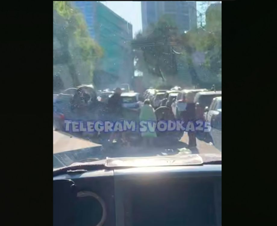 По предварительной информации, пострадавших в результате аварии нет. Однако, как сообщает PRIMPRESS, дорожное движение в этом районе значительно замедлилось.