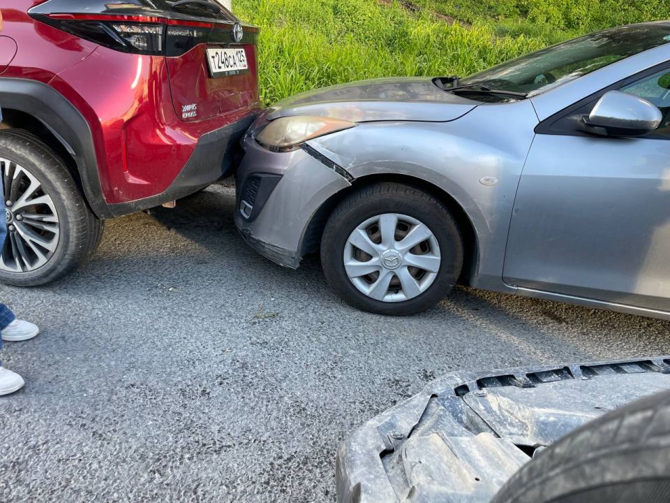От удара Mazda оттолкнуло в припаркованную Toyota Yaris.