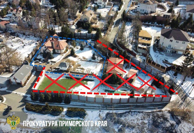 Проверка надзорного органа в апреле 2023 года выявила факт незаконного захвата более 2 тысяч квадратных метров муниципальной земли в районе Океанской. Хотя основной коттедж располагался на законных основаниях, значительная часть территории с бассейном, баней и спортивной площадкой оказалась самовольно занятой.