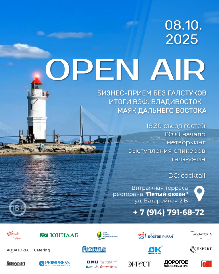 Приглашаем вас на OPEN AIR БИЗНЕС-ПРИЁМ (БЕЗ ГАЛСТУКОВ) «Итоги ВЭФ-2025. Владивосток-маяк Дальнего Востока».