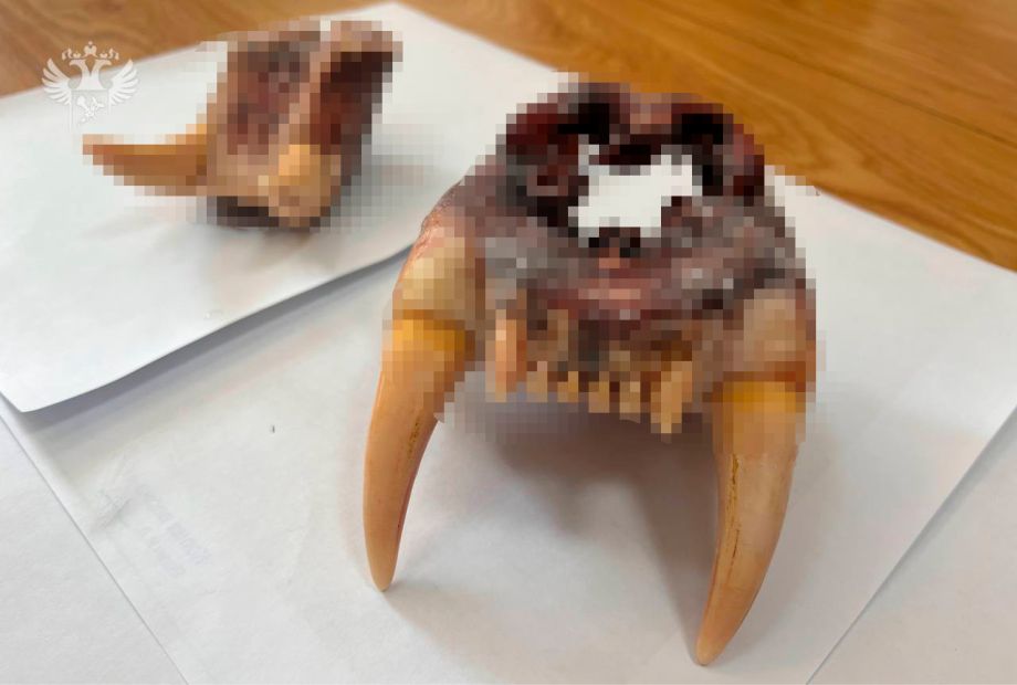 «В кабине большегруза таможенники обнаружили верхнюю и нижнюю челюсти амурского тигра с сохранёнными клыками и резцами и две коленные чашечки этого редкого животного, а также 10 лап медведей. Товары перемещались в свежезамороженном виде», — говорится в сообщении Дальневосточного таможенного управления.