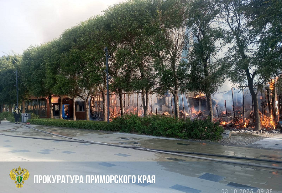 Мощный пожар полыхает рядом с парком аттракционов на набережной Спортивной гавани во Владивостоке утром в пятницу, 3 октября. По предварительным данным, около 9 часов утра вспыхнуло кафе с летней верандой, сообщает PRIMPRESS.