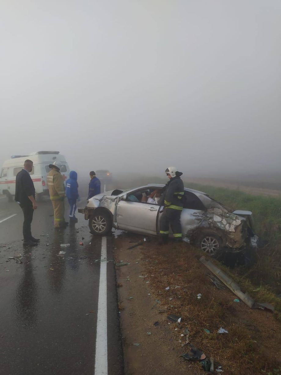 Сообщение о ДТП поступило в дежурную часть 11-го отряда государственной краевой противопожарной службы в 7:20 утра. По предварительной информации, водитель школьного автобуса «ПАЗ», который направлялся за детьми и на момент аварии был пуст, во время обгона впереди идущего автомобиля совершил лобовое столкновение со встречным легковым автомобилем «Тойота Королла».