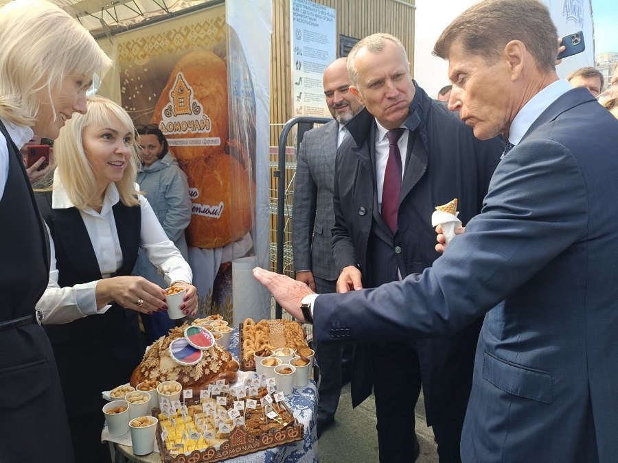 Празднества начались с торжественной речи губернатора Приморского края Олега Кожемяко. Глава края подробно рассказал обо всей представленной на празднике белорусской продукции, которую можно приобрести на ярмарке.