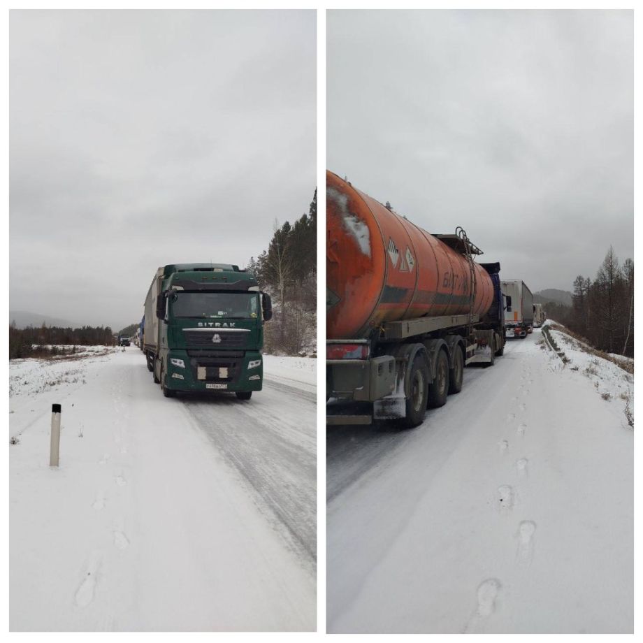 Особо сложная ситуация сложилась на трассе Иркутск – Чита, где образовалась многокилометровая пробка из большегрузного транспорта. По сообщениям очевидцев, фуры стоят в 32 километрах от Хилка уже более полутора часов.