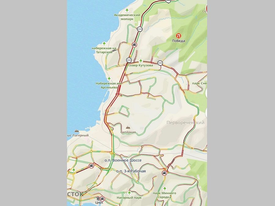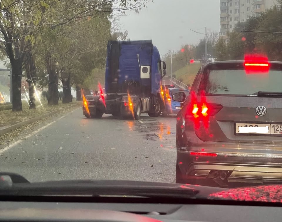 Утренний дождь сделал скользкими дороги во Владивостоке в четверг, 16 октября, — из-за ДТП в городе девятибалльные пробки, сообщает PRIMPRESS. В частности, из-за ДТП на Магнитогорской собрался крупный затор со стороны Лесного кладбища.