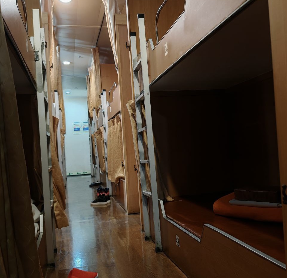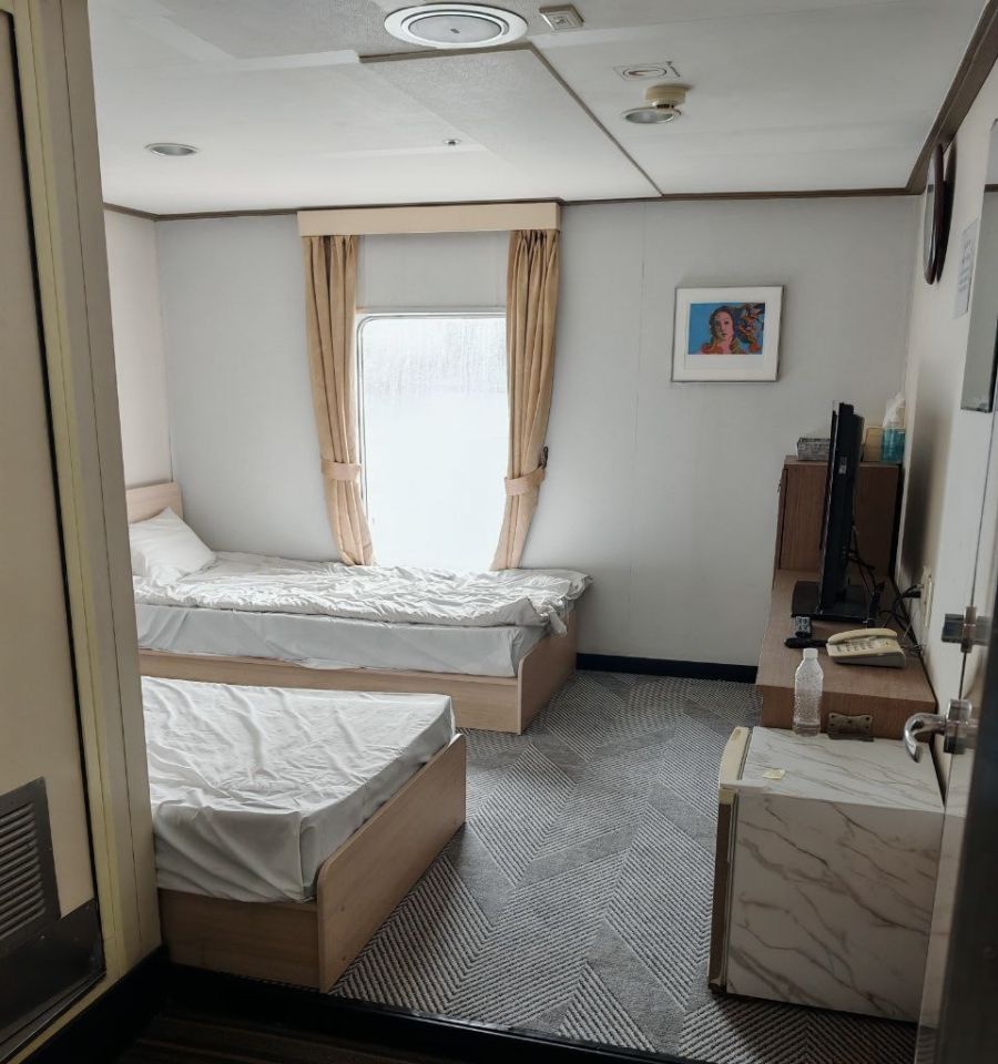 Как удалось заметить, паром далек от заполнения — много пустующих мест. Корреспондент также отмечает разницу в поведении пассажиров: российские туристы предпочитают прогулки по палубе и посещение ресторана, в то время как корейцы чаще остаются в своих каютах или спят прямо на палубе, как привыкли.