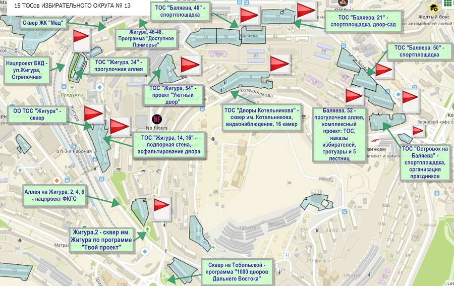 Октябрь начался с посещения двух ТОС округа губернатором Приморского края Олегом Кожемяко и главой города Константином Шестаковым, которые проверили ход выполнения проектов устройства спортплощадки ТОС «Баляева, 21» и сквера на ул. Жигура, 16, ТОС «Жигура».