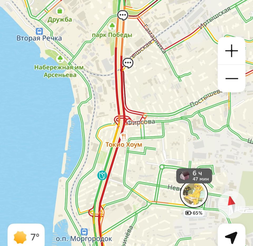В приложении «2ГИС» водители выражают недовольство. Одни утверждают, что во всем виноваты те, кто перестраивается на Второй Речке с третьего ряда. Другие уверены, что именно отключенные светофоры привели к серьезной пробке.