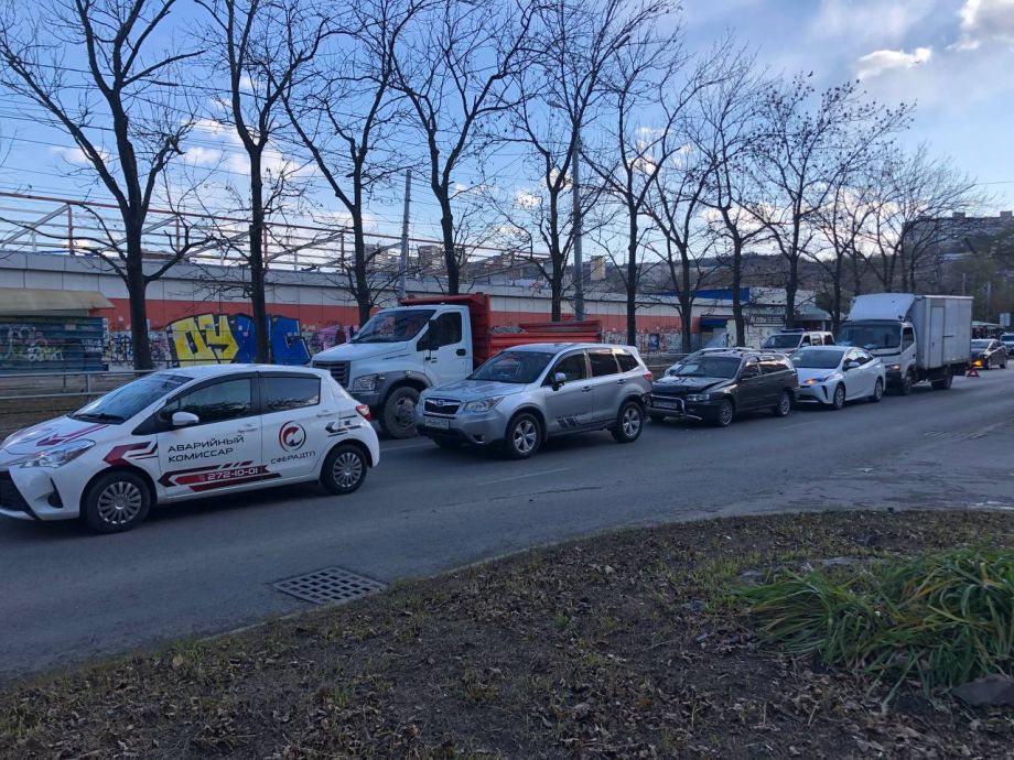 Во Владивостоке произошло ДТП с участием 4 машин. Водитель грузовика не выдержал дистанцию и устроил массовое столкновение, сообщает PRIMPRESS со ссылкой на службу аварийных комиссаров «СфераДТП».