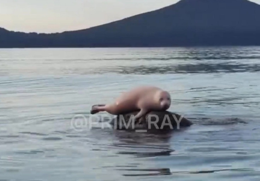 Осень также не обделила приморцев встречами с необычными морскими обитателями. 1 сентября жителей Ольгинского района вышла поприветствовать редкая белая ларга (дальневосточный тюлень).