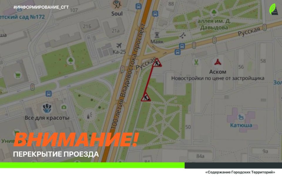 Улицу Русскую во Владивостоке временно перекроют из-за реконструкции перекрёстка. Завтра утром специалисты заблокируют проезд возле дома №48, сообщает PRIMPRESS.