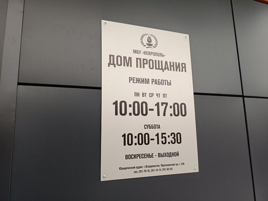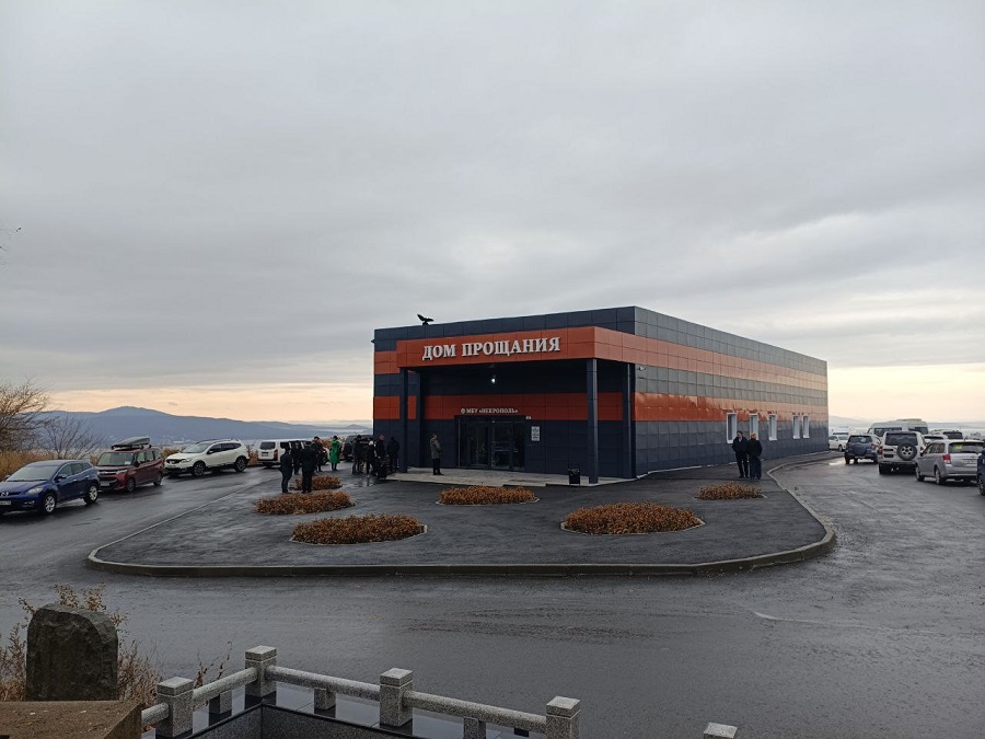 Новое строгое и современное здание было построено непосредственно на территории кладбища. Рядом на сопке Монастырская находится объект культурного наследия «Уссурийская батарея» и создано воинское захоронение. Это важно — в новом Доме прощания предусмотрены специальные условия для прощания с участниками СВО. Дом прощания является частью муниципальной городской похоронной службы МБУ «Некрополь».