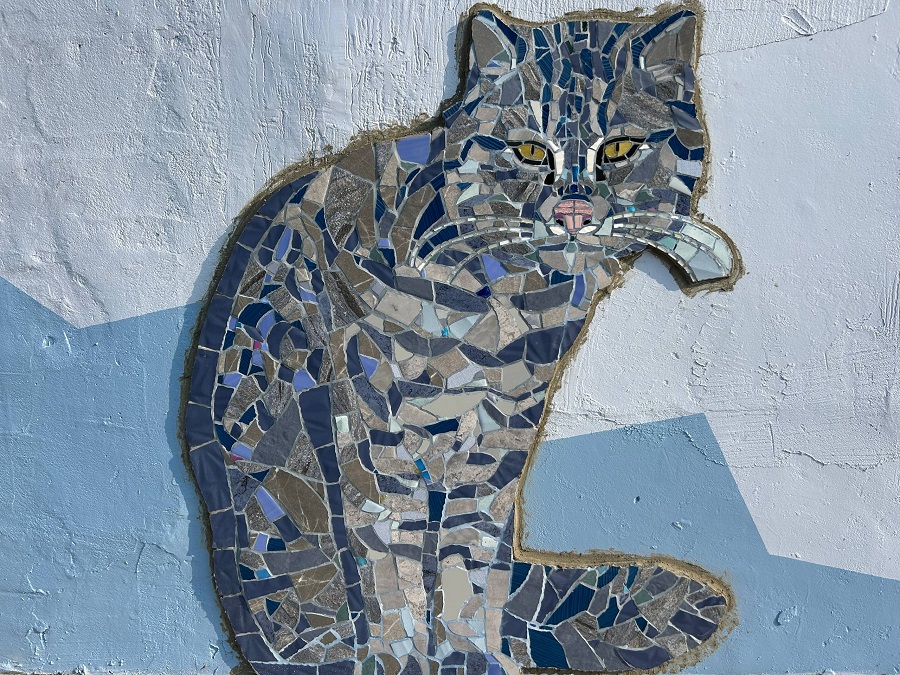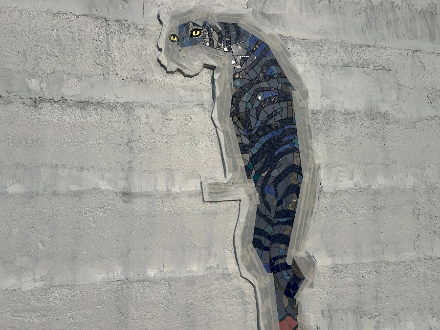 Он очень долго диссонировал с выцветающим муралом «Мы – Дальний Восток», но его не убрали, а наоборот — отдали художникам всю стену. Теперь рядом с автобусной остановкой «поселился» мозаичный лесной кот.