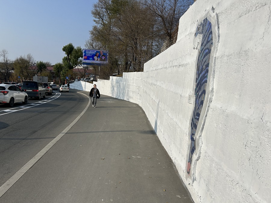 «Новая волна» будет состоять из достопримечательностей флоры и фауны Приморского края и Японского моря. Первый элемент арт-объекта появился на подпорной стене «нелегально» ещё год назад — мозаичный тигр.