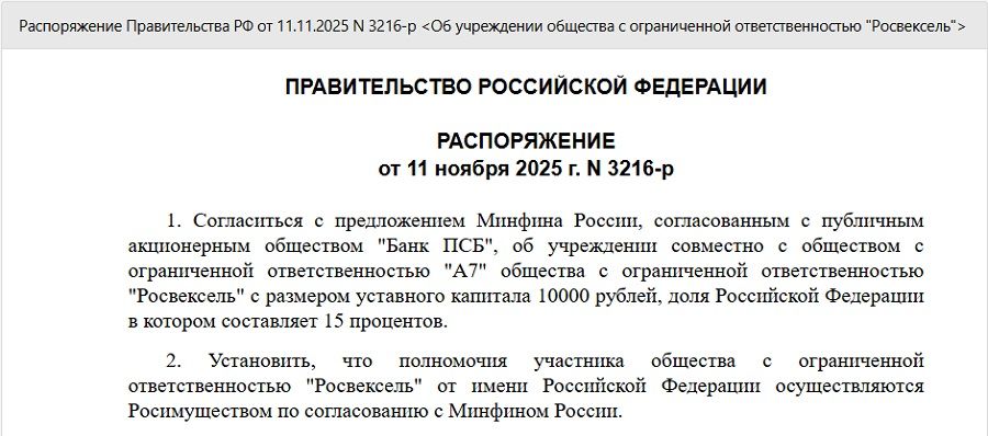 «Создание компании «Росвексель» совместно с Минфином является важной частью формирования суверенной финансовой инфраструктуры России. Это усилит возможности российских экспортеров и импортеров и поддержит дальнейшее развитие внешней торговли. ПСБ использует свои уникальные компетенции, опыт участия в масштабных государственных инициативах и глубокую интеграцию в финансовую систему страны. Мы стремимся создавать решения, которые укрепляют устойчивость экономики и расширяют условия для клиентов на международных рынках», – сказал заместитель председателя ПСБ Михаил Дорофеев.