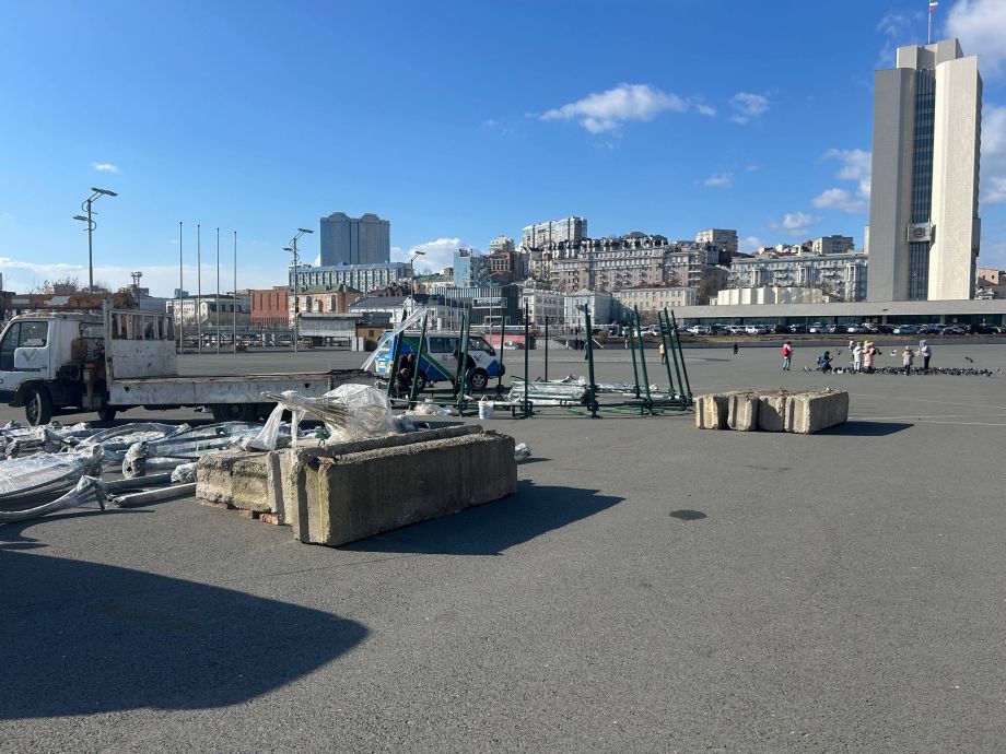 «Работы по установке елки будут идти десять дней. Ёлка наша, отечественного производства!», – рассказал корреспонденту PRIMPRESS бригадир рабочих.