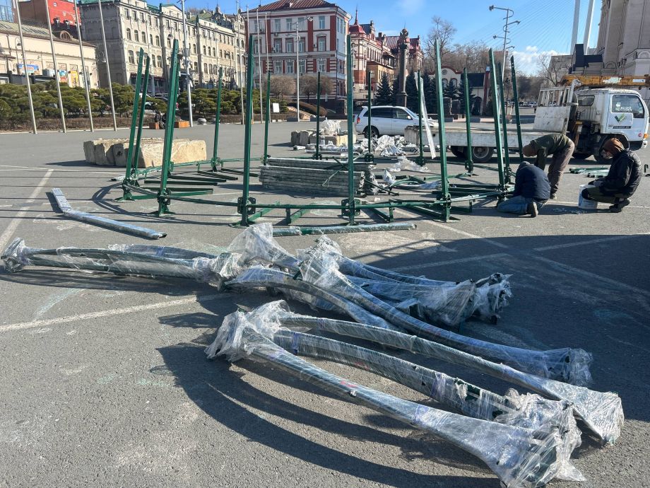 Десятидневный монтаж главной городской ёлки начался на главной площади Владивостока в пятницу, 21 ноября. Предполагается, что первый день декабря краевая столица встретит уже с новогодним настроением, сообщает PRIMPRESS.