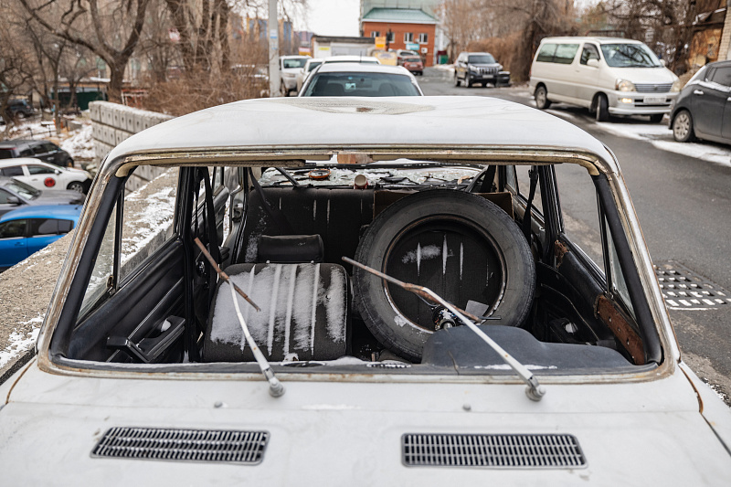 Сообщить о брошенных разукомплектованных машинах, которые долго стоят на улицах города, можно в администрацию Владивостока.