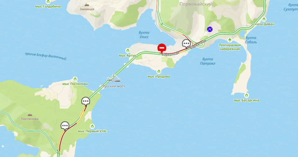 Мост на Русский остров временно закрыт для движения транспорта. В соцсетях местные жители сообщают, что на мосту поднялся сильный ветер, и с конструкций начал падать лед прямо на дорогу. Из соображений безопасности движение в обе стороны остановили, сообщает PRIMPRESS.
