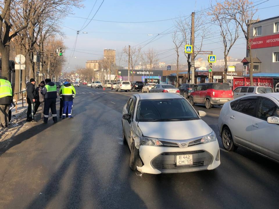 Жесткое ДТП произошло сегодня на Народном проспекте во Владивостоке, в районе дома 19. По предварительным данным, водитель Mercedes начал поворачивать, когда сзади по встречной полосе его попытался обогнать водитель Toyota Corolla Axio, сообщает PRIMPRESS.
