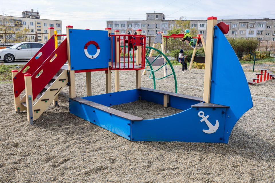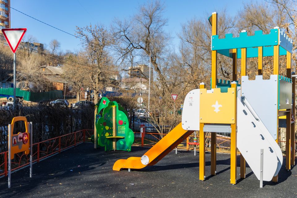 Работы велись по двум основным направлениям. По федеральной программе «Благоустройство дальневосточных дворов» новое асфальтовое покрытие, современные детские и спортивные площадки появились на 39 адресах, включая дома на улицах Приходько, Сафонова, Связи и других. Например, во дворе на Сипягина, 19, теперь есть не только свежий асфальт, но и игровая зона для детей.