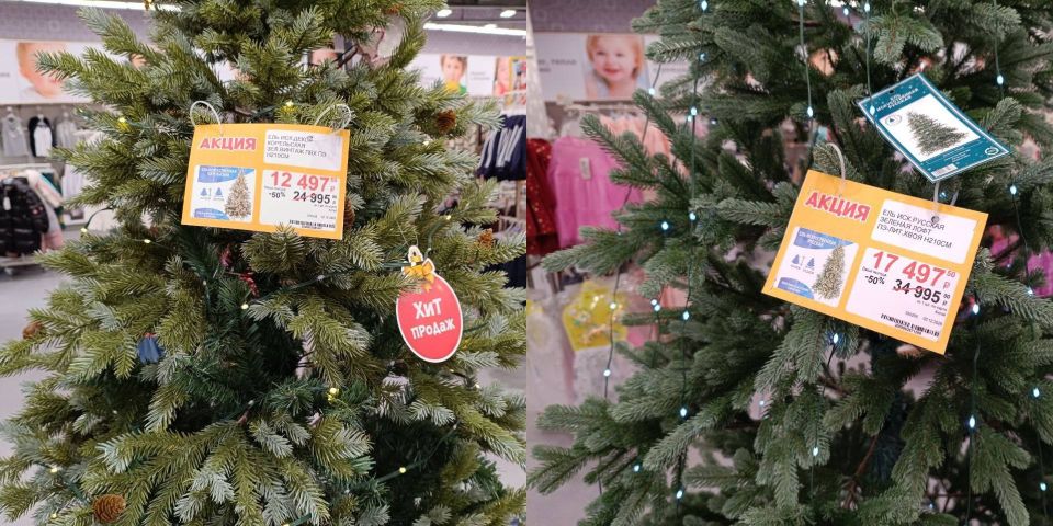 Продолжив свои поиски в других магазинах города, журналист нашёл ещё несколько интересных вариантов. На двухметровые ёлки, в которые встроена гирлянда, действовала цена в диапазоне от 12,5 тысячи до 17,5 тысячи рублей.