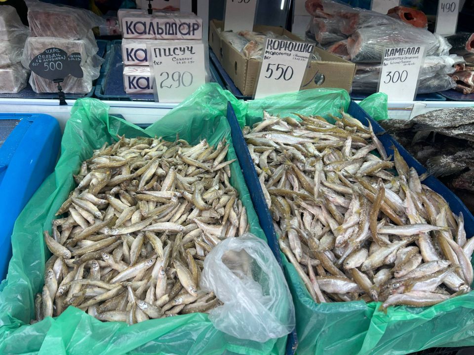 Даже традиционно доступная сахалинская навага сейчас стоит от 80 до 180 рублей за килограмм, писуч – от 290 до 300. Зубарь стоит от 350 до 550 рублей за килограмм. А корюшку вообще в среднем продают за 550 рублей за килограмм. И почти вся рыба была замороженная.