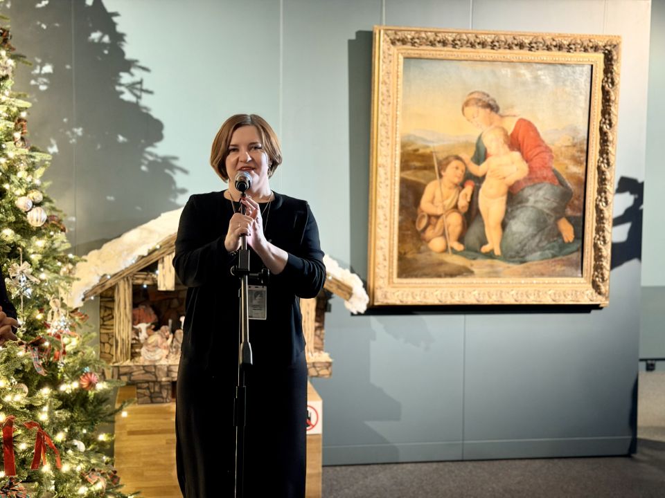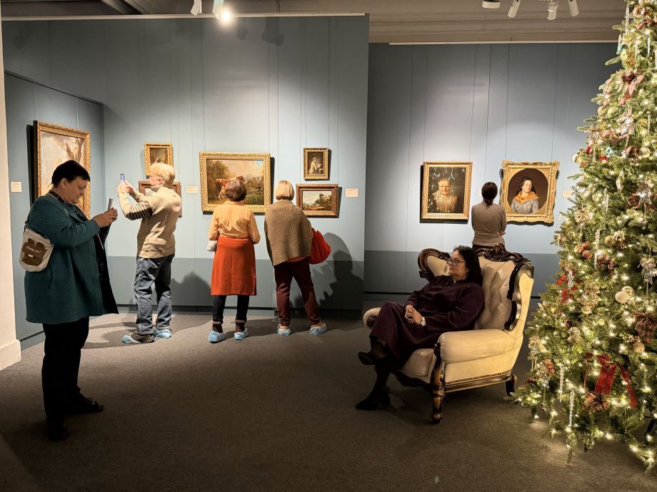 Созданная накануне праздников экспозиция наполнена теплой, уютной и новогодней атмосферой. Мягкое освещение, праздничное украшение парадного зала и декоративные элементы создают ощущение торжественного пространства, где каждый посетитель может почувствовать близость к истории и величию искусства.