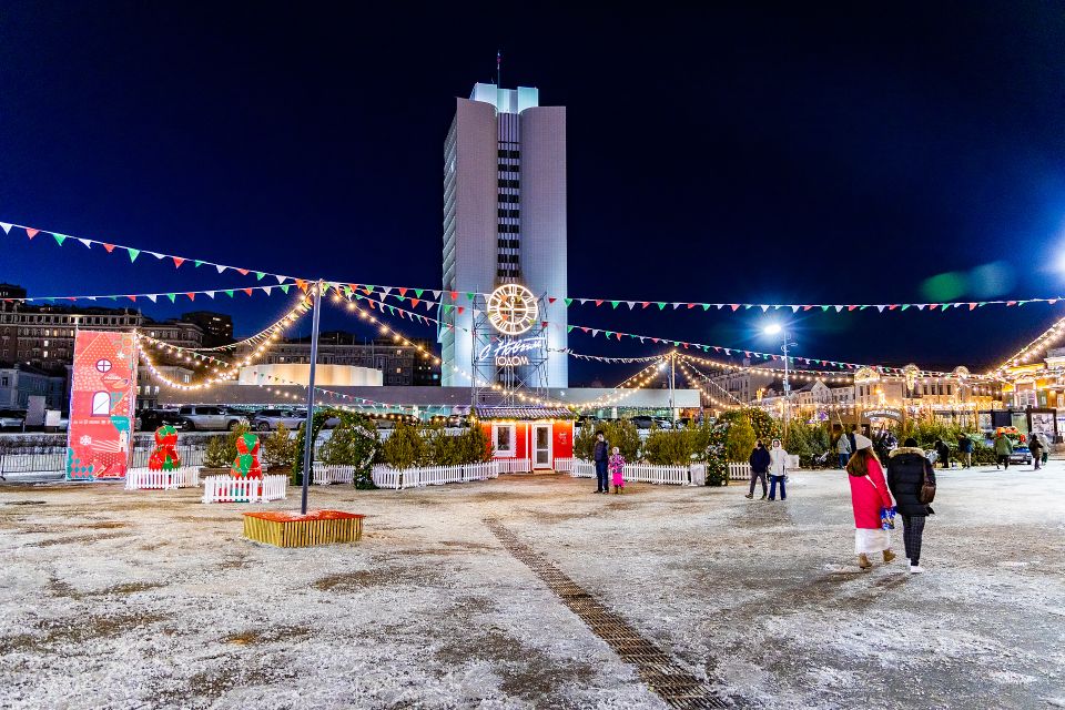 Владивостокский морской торговый порт (ВМТП, входит в Транспортную группу FESCO, предприятие в контуре управления Госкорпорации «Росатом») уже пятый год подряд совместно с администрацией Владивостока строит на главной городской площади настоящий зимний городок.