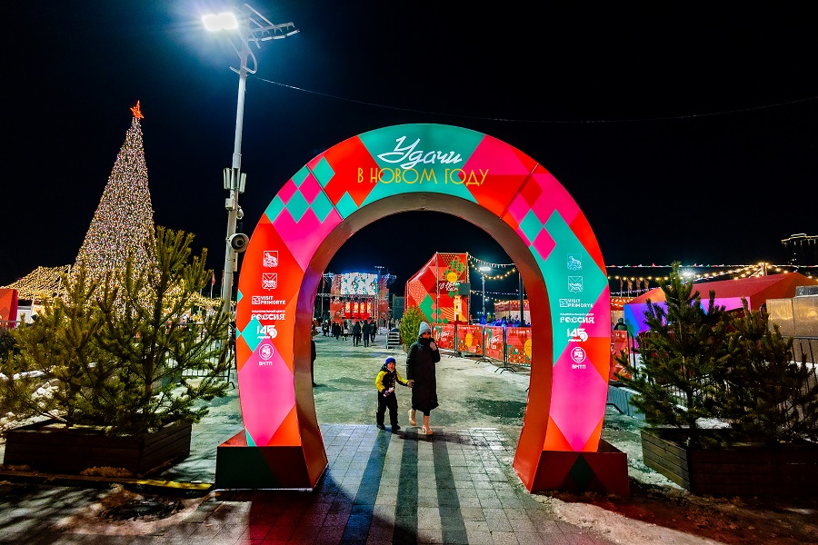 Концепция празднования Нового 2026 года – «Как в детстве», поэтому центральная площадь города станет пространством, где взрослые снова почувствуют себя детьми: здесь установлены интерактивные развлечения, фотозоны и большой экран с мультиками.