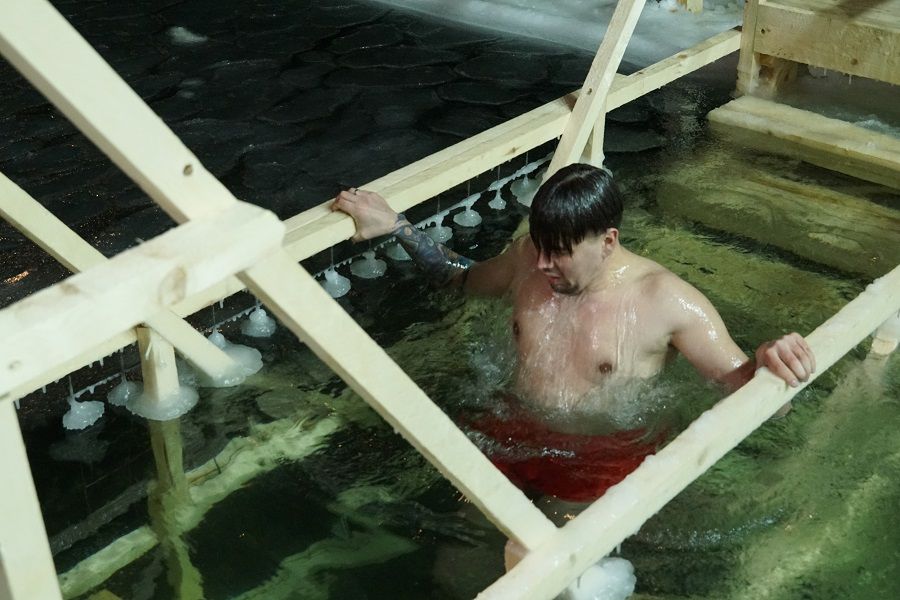 Во Владивостоке обряд омовения начался накануне вечером в клубе зимнего плавания «Косатка ДВ». Десятки жителей и гостей города окунулись в освященную прорубь под присмотром медиков и спасателей. Для удобства и безопасности верующих подготовлены деревянные тропы, ступени, перила и помост.