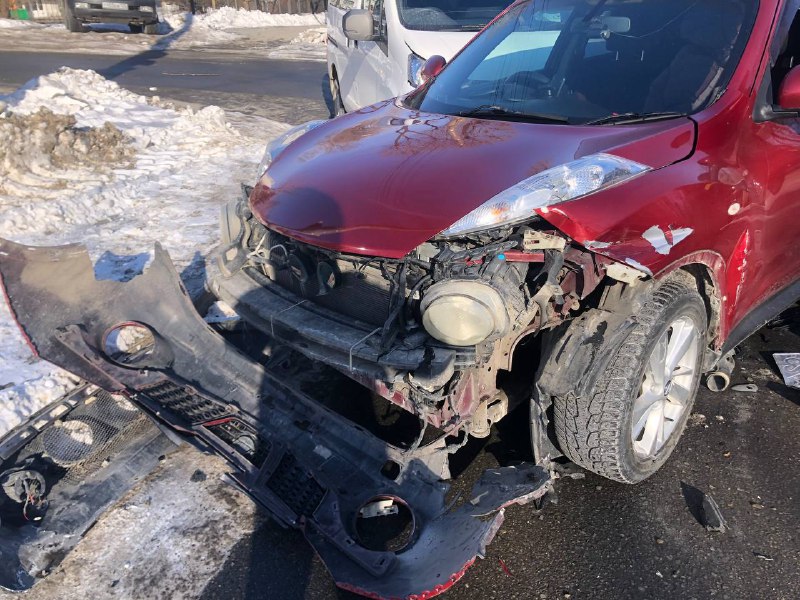 Виновник столкнулся с автомобилем Nissan Juke, который от удара столкнулся с Nissan Serena, выезжающим с прилегающей территории. У виновника страховка есть.