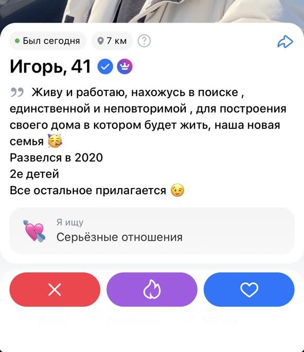 Что пишут мужчины? Весьма отпугивающие предложения с прямым намеком на то, что он в разводе и с детьми.