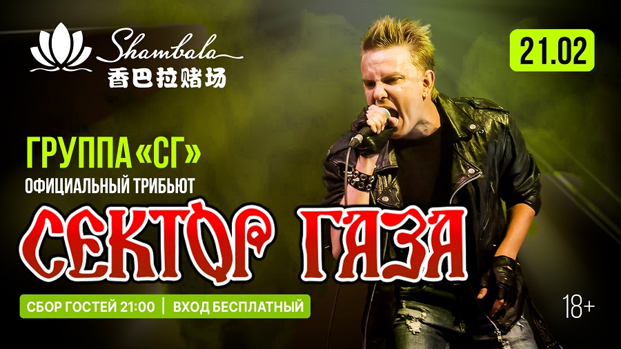 На сцену «Шамбалы» выйдет группа «СГ» (Сектор Газа) — официальный трибьют-проект, основанный музыкантами последнего концертного состава легендарной группы и родным племянником её лидера Юрия Хоя, Юрием Япрынцевым. Команда, единственная сохраняющая аутентичный стиль советского панка, подарит зрителям потрясающую энергию бессмертных хитов «Песни о соседях», «Туман» и других композиций, которые стали гимнами целого поколения.