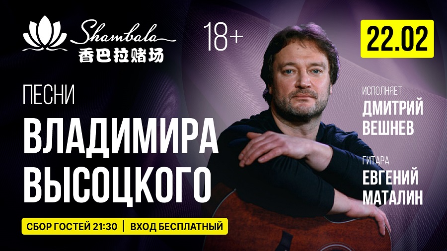 · 22 февраля, 21:30 — Дмитрий Вешнев с программой песен Владимира Высоцкого