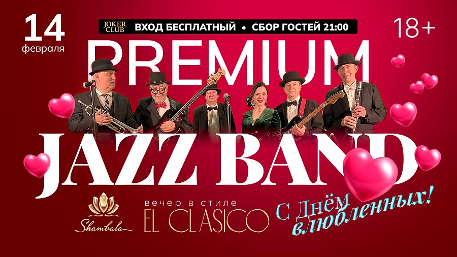 · 14 февраля, 21:00 — День всех влюблённых с Premium Jazz Band