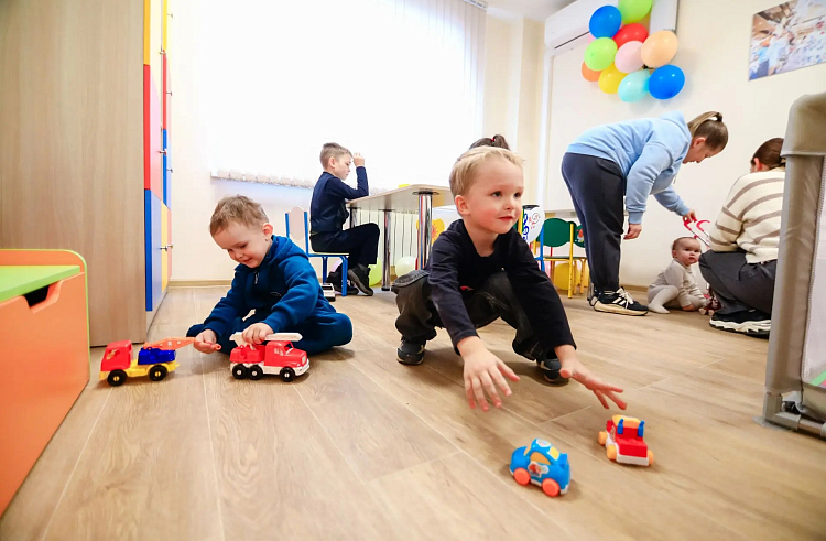 Анастасия Приходько привела в новую детскую комнату сына и дочь — старшая Арина помогает маме. Скоро Анастасии выходить на работу. Женщина признаётся, что вернуться в профессию с двумя малышами сложно, но такое место облегчит жизнь многодетной мамы.