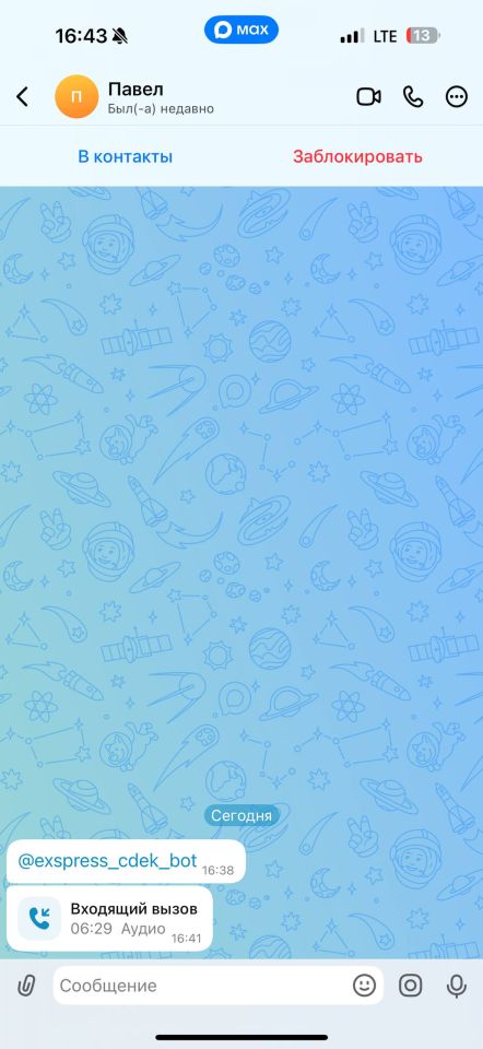 В мессенджере МАХ поступил аудиозвонок от некоего Павла, который представился сотрудником компании по доставке грузов CDEK. Он сообщил, что на имя (назвал ФИО) пришла посылка, которую нужно срочно забрать, иначе наступит период платного хранения. На вопрос о том, где забрать посылку, Павел не смог дать определенного ответа:
