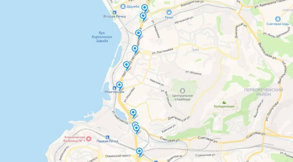 - Океанский проспект (от дома № 13 до дома № 17, со стороны бизнес-центра «Фрэш Плаза»)