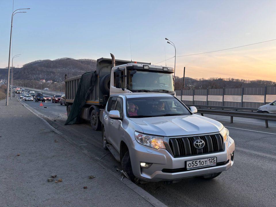 Жесткое ДТП с участием нескольких автомобилей произошло на объездной трассе у седанкинской развязки в сторону Артёма. Грузовик влетел в автомобиль, который аварийно остановился в правой полосе, сообщает PRIMPRESS.