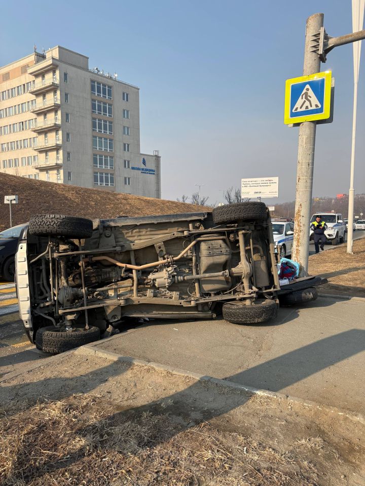 На Русском острове произошла серьезная авария с участием двух автомобилей. Водитель внедорожника Suzuki Jimny при повороте налево не предоставил преимущество встречному автомобилю Honda CR-V и перевернул автомобиль прямо посреди проезжей части, сообщает PRIMPRESS со ссылкой на службу аварийных комиссаров «СфераДТП».