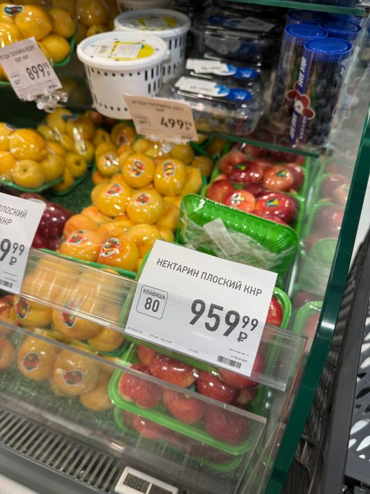 Жители Владивостока столкнулись с космическими ценами на фрукты в одном из популярных гипермаркетов города. Покупательница была шокирована, обнаружив, что стоимость нектаринов и сливы не только «кусается», но и превышает ценник на мясо. За килограмм свежих фруктов продавцы просят 500 рублей. За 125-граммовый контейнер малины просят 600 рублей. Абсолютным рекордсменом по дороговизне стала китайская черешня — ее килограмм обойдется покупателю в 4 тысячи рублей.