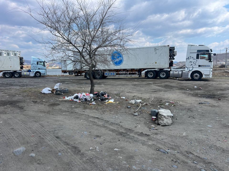 Водители фур, ожидающие погрузки, оставляют после себя горы отходов: пакеты с едой, пластиковые бутылки, банки и другой мусор, который загрязняет береговую линию. Ситуацию усугубляет то, что стоянка фур и по совместительству новоиспеченная свалка расположены в водоохранной зоне (прилегающая к береговой линии территория с особым режимом хозяйственной деятельности для защиты водоемов: ширина составляет от 50 до 200 м для рек).