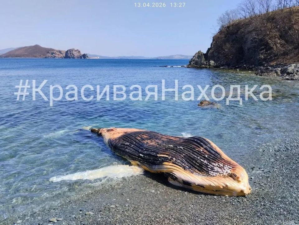 Туша кита обнаружена на диком пляже вблизи бухты Мусатова в Находке, сообщает PRIMPRESS.