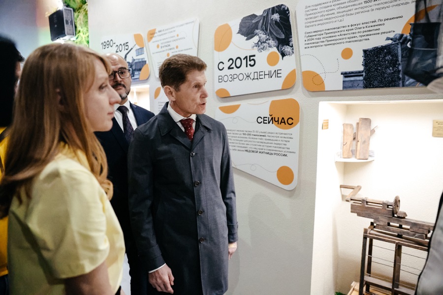 «Здесь представлена экспозиция не только разновидностей мёда, производимого в Приморье, но и чаи из наших дикоросов – элеутерококка, лимонника и калины. Приморье – медоносный край, поэтому для жителей региона занятие мёдом всегда было хорошим доходом. Именно это сейчас мы и возрождаем», – сказал Олег Кожемяко.
